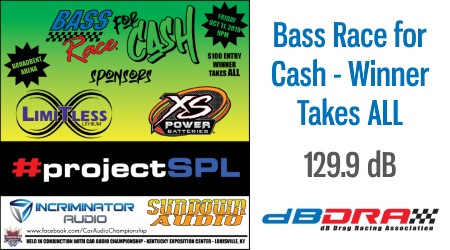 AUSTIN, TX (09.30.2019) – The dBDRA has announced Bass Race for Cash – Winner Takes ALL at the Car Audio Championship in Louisville, KY. This will take place at the conclusion of the 3X event on Friday, October 11, 2019 in the Broadbent Arena. (approximately 9 pm)