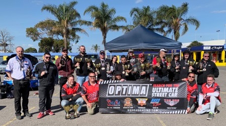 Competitors are pictured with their trophies and dB DRA staff as the Optima event at Calder Park in Melbourne concluded.