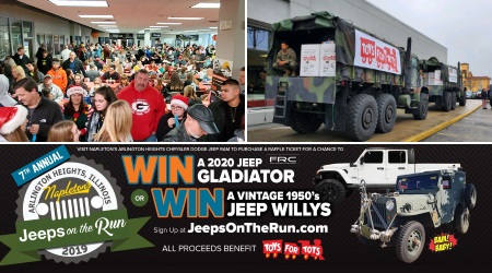 CHICAGO, IL (12.04.2019) – The 7th Annual Toys for Tots Run, presented by Jeeps on the Run, was a HOME RUN! Nearly 700 Jeeps, and a crowd estimated at 2000 Jeepers, were on site at Napleton’s Northwest Jeep Dealership in Chicago IL for the event on Sunday, December 1.