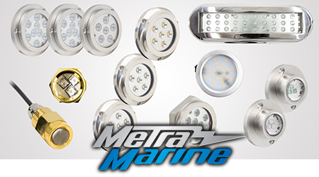 HOLLY HILL, FL (01.03.2019) – Metra Marine by Metra Electronics is introducing new transom LED lights and drain plug LED lights for boats at CES 2020. These products are designed for the back of the boat to light up the water and are constructed of stainless steel 316 housing and are IP68 certified to withstand the harsh marine environment. These high-output underwater lights come in a variety of sizes and range from 15 watts all the way up to 72 watts of light, designed for a surface mount. The transom lights are available in white, blue, RGB or RGBW (RGB LEDs with a pure white light option).