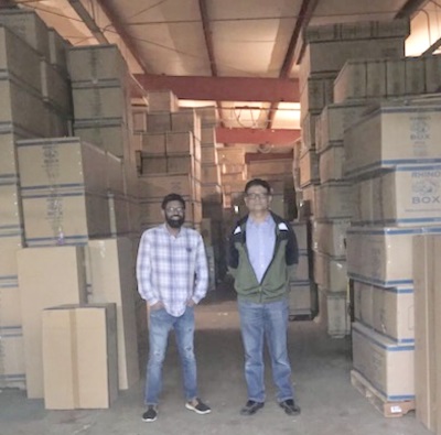 Nassir Rizvi and Mosin Ahmed pictured in the warehouse with a portion of the inventory.
