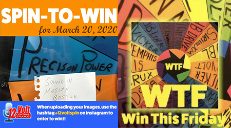 Stay tuned to 12voltnews.com on the web and @12voltnews on Instagram, Facebook and Twitter for 12volt Spin-To-Win winner announcements every Friday!