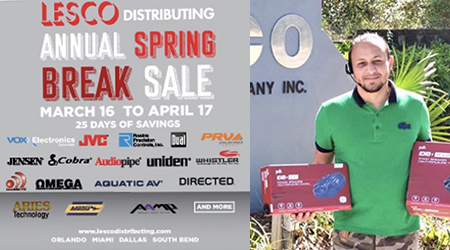The Annual Spring Break themed event featured 25 business days of savings from March 16th until April 17th. Brands featured included VOXX, JVC Mobile, Rostra, Dual, PRV, Jensen, Polk Audio, Cobra, AudioPipe, Uniden, Whistler, Massive Audio, Omega, Aquatic AV, Directed, Aries Technology, Metra, AAMP and more. All four of the LESCO branches-Orlando, Miami, Dallas and South Bend-were shipping orders to dealers.