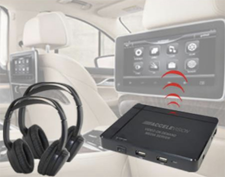 An industry first, just like on Airplanes, our Accent Mobile VOD Entertainment system streams Wireless HD content from your hard drive to up to 6 users This system supports up to 1TB of hard drive or USB Storage. Each user may individually control functions such as Play, Stop, Pause, FF, Rewind etc.,” said Bob Goodman, Accent Mobile, Director Of Channel Sales.
