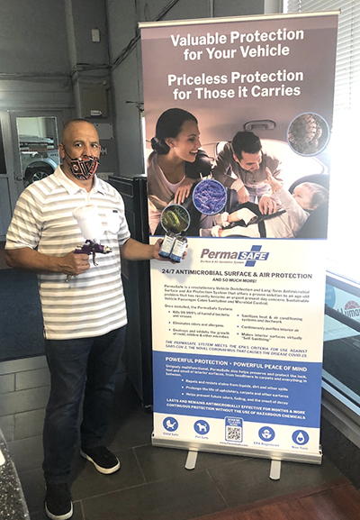 Manny Moncada, company owner, related “Consumers today want to be protected from the CoronaVirus. We treating vehicles with PermaSafe. At between $249 and $299 we offer a complete package for our customers. That includes disinfecting the vehicle and applying a protective layer with a 3-year life.”