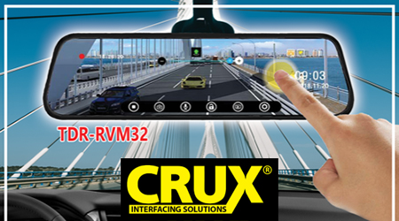 CHATSWORTH, CA (07.03.2020) – Crux has released the TDR-RVM32 a 9.66″ Wide Screen Rear View Mirror Monitor & DVR with GPS functions.