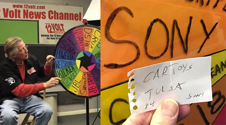 The announced 12volt Spin-To-Win Wheel Winner, Number 84 Franken Audio, could not be reached. Therefore a new slip was drawn from the jar. The Car Toys Tulsa slip was drawn.