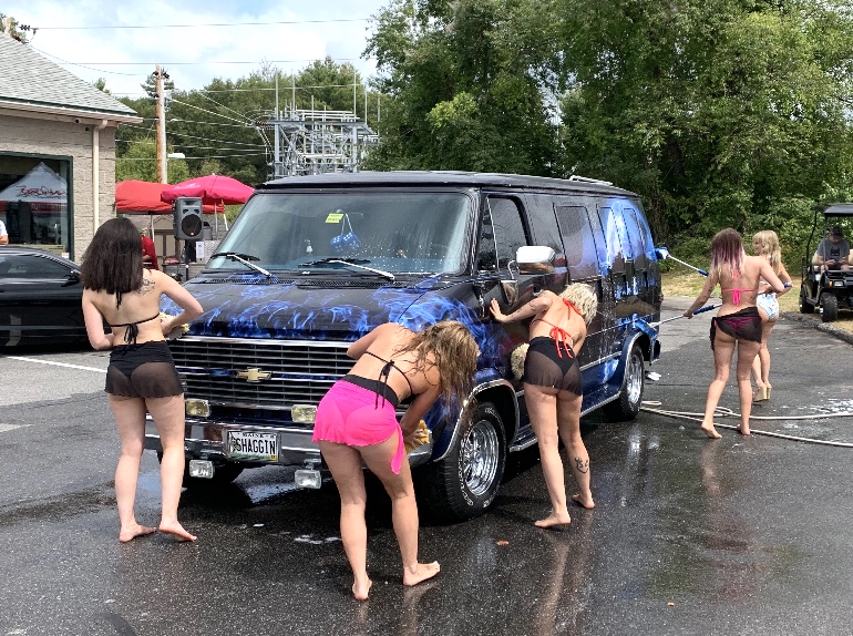 SANFORD ME (08.17.20) On Saturday, August 15th, Sanford area automotive enthusiasts drove their dirty rides to the 24th Annual Sanford Sound Bikini Car Wash. It was an overcast day but that did not slow the action as 5 lovely bikini-clad models, from The Lightworks Studio, lathered up the dirty cars and rubbed them until they shined.
