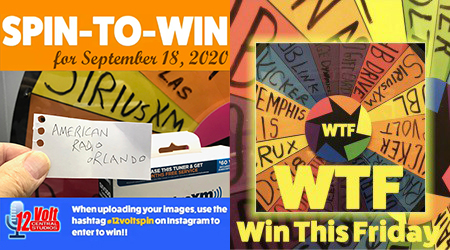 On Friday morning, September 18th, the 12volt Spin-To-Win Wheel rolled for the 94th time and the Wheel landed on the SiriusXM space. The American Radio Orlando slip was drawn from the jar. We placed a call to the Orlando area retailer and Jeremy Bemberg was excited to hear the news. A SiriusXM SXV300 Tuner would be headed that way.