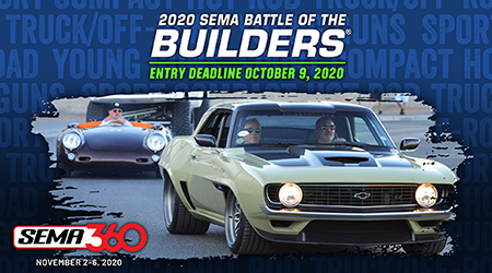 All entries in the SEMA360 Builder Showcase may also participate in SEMA Battle of the Builders. Now in its seventh year, SEMA Battle of the Builders is the foremost competition that recognizes and celebrates the accomplishments of SEMA vehicle builders.