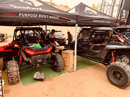 “During the 5-day event run we spent time with well over 1000 people in our booth. We offered onsite installation too and worked under the lights into the night to complete jobs. We worked on nearly 100 vehicles during the event. Many Can Am’s and RZR’s were decked with Rockford Fosgate Stage 5 gear. Several customers got upgrades to their systems from previous years.”