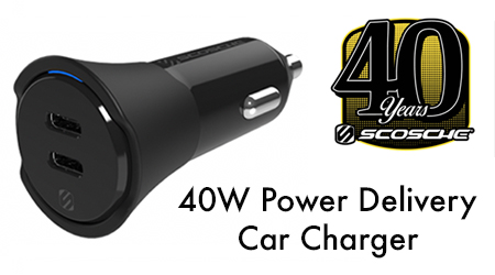 OXNARD, CA (11.05.2020) – SCOSCHE Industries has introduced their new compact and super fast PowerVolt 40W USB-C Power Delivery (PD) Car Charger.