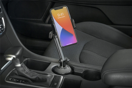 Modern vehicles typically feature multiple cup holders, making it easy and practical to use them to hold more than just beverages. Our new range of cup holder mounts have bases that adjust with a simple twist to fit any size cup holder. A telescoping arm lets you adjust the reach of the mount and then secures it in place with a lock-nut when you find the right height. A 360-degree rotating head lets you view your phone in portrait, landscape, or any angle in between, and tilts and adjusts so that you can safely use your phone hands-free while you drive.