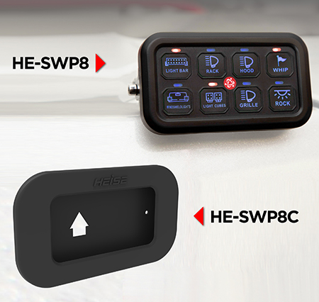 Heise first introduced the compact 8 Gang Switch Panel System, the HE-SWP8, at the 2019 SEMA Show. This product features a rugged design that works in all types of vehicles, including UTVs, Jeeps, and other outdoor applications. The HE-SWP8 can integrate lighting control into any vehicle and fit into the dash panel, center console, vehicle pillar or even the overhead sunglass holder.