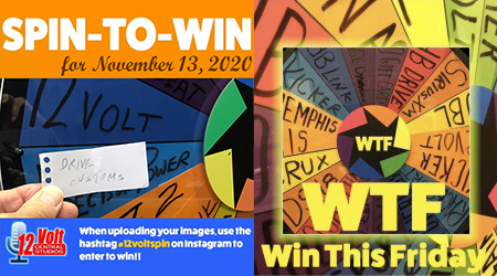 On Friday morning, November 13th, the 12volt Spin-To-Win Wheel rolled for 102nd time and the Wheel landed on the 12volt News space. The Drive Customs slip was drawn from the jar and an Instagram post of the winning slip was posted. We called the San Luis Obispo CA retailer and Jesse Sprister was very happy to hear the news. A $100. Check will be headed that way.