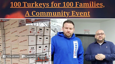 AURORA, IL (11.25.2020) – On Sunday, November 22nd 100 boxes of turkeys were on a pallet under the Endless Possibilities tent on Galena Blvd in downtown Aurora IL. Endless Possibilities Auto, The Reyna Family Project, Headliners Barbershop, B1Brazilian Jiu Jitsu & Self Defense-Naperville came together for the community event to provide a Thanksgiving Turkey for 100 families.