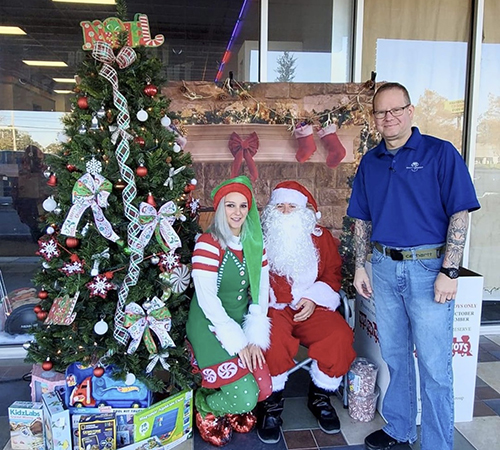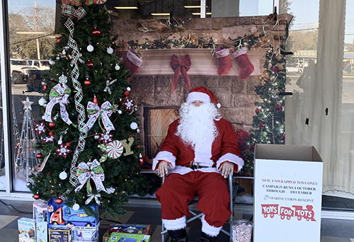 Continuing, Neveu offered, “Without the traditional Santa Sleigh event in the center we wanted to provide some cheer for area youngsters and holding a Toys For Tots event seemed like a great opportunity. In the past we have co-hosted events with the community minded area LA Jeepers Club. With their help the Toys For Tots event came together. They had several members helping in the store along with Santa and his Elf.”