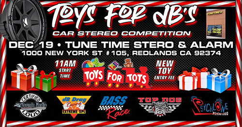 To participate in the Toys for Tots competition series, retailers and promoters will need to contact the dB Drag Racing Association. Auto sound manufacturers are also welcome to participate.