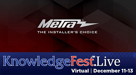 All three of the sessions will stream live from the Metra install bay with Jason Anderson, VP of Product Research and Development. To register, visit Knowledgefest.live and sign-up for the event. An additional registration is required for Metra’s training sessions, which can be done from the Manufacturer Training page. On December 11, attendees will be able to view Metra’s virtual booth and participate in the event.