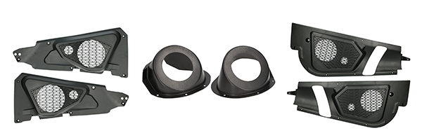 The MPS-RZRDP1 is a pair of speaker door panels designed to add an aftermarket 6.5-inch speaker and tweeter to 2014-2020 Polaris RZR 900 and 1000 models. This door panel is molded to fit stock doors for a flush-mount speaker solution that can withstand the elements. The MPS-GENDP1 is a set of speaker pods designed to fit 6.5-inch aftermarket speakers under the dashboard of 2016-2020 Polaris General 1000 models. The pods are molded for ease of installation and to maintain the factory look and feel.