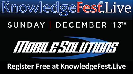 TEMPE, AZ (12.11.2020) – Mobile Solutions’ founder and CEO Bryan Schmitt will deliver a live workshop at KnowledgeFest.Live on Sunday December 13th, 2020 from 5:20-6:20pm (EST) from its Tempe, AZ-based headquarters. The workshop is titled “Executing for the Future: Top Tips to Maximize Labor Revenue” and takes an in-depth look at the state of the industry in the current 2020 and upcoming 2021 world.