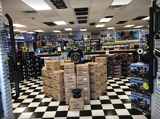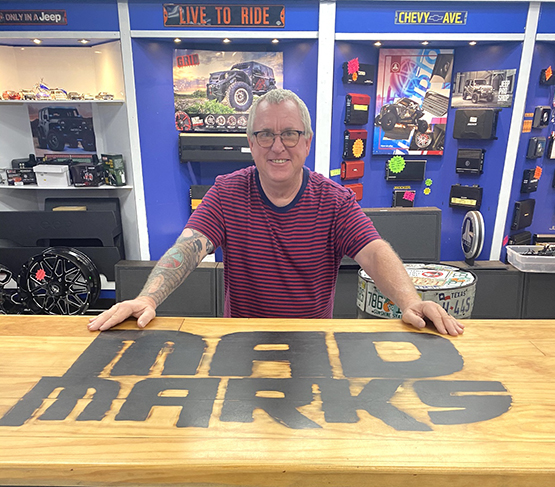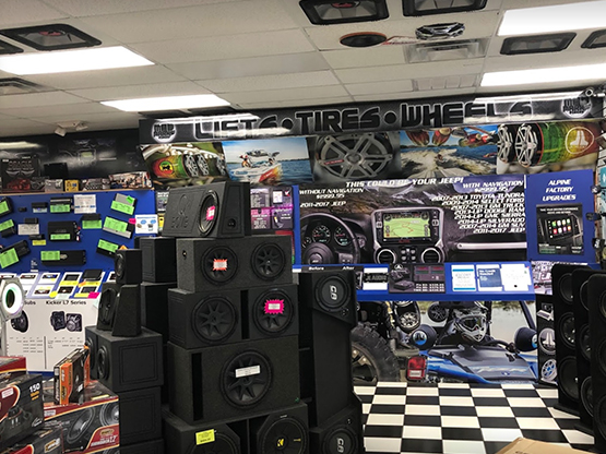 There is definitely a WOW Factor when people enter Mad Mark’s. The showroom walls are covered with large graphics spotlighting Wheels, Tires, Lifts and Motorcycle Upgrades. The showroom floor features stacks of audio products, a marine cockpit display and stacks of wheels. The Kayak, loaded with an amazing system with multiple amps and speaker pods, is also on display. Bear in mind a Kayak is less than 10 feet long.