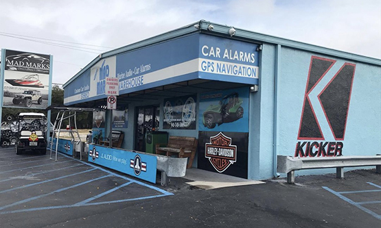 BRADENTON, FL (12.17.2020) – Mad Mark’s Stereo has been “Disturbing the peace since 1988” in Bradenton FL. For more than 30 years Mark Turk and his Team have also been creating a legion of happy customers. A Mad Mark’s Instagram post on Tuesday December 15th, highlighting new exterior signage on the building, led to this article. A Kicker logo,15’ high and 6’ wide, was painted on one side of the building that is located on a very busy street in Bradenton.