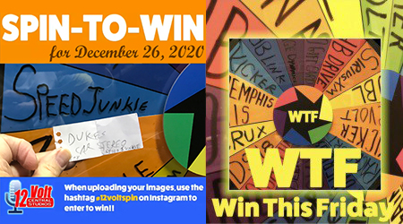 As Friday was Christmas 12volt Spin-To-Win Wheel rolled for 108th time on Thursday December 24th. The Wheel landed on the Speed Junkie space. The Duke’s Car Stereo slip was drawn from the jar and an Instagram post of the winning slip was posted. A video of the Wheel spin was also posted. We will reach out to Duke’s and let them know the good news that a pair of Speed Junkie gloves will be headed their way.