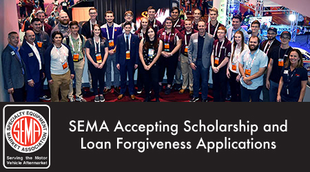 DIAMOND BAR, CA (01.07.2021) – SEMA is now accepting applications for the 2021 SEMA Memorial Scholarship and Loan Forgiveness Program at www.sema.org/scholarships. Scholarships are available to students pursuing a degree or certification that leads to a career in the automotive industry, and loan forgiveness is available to employees of SEMA-member companies.