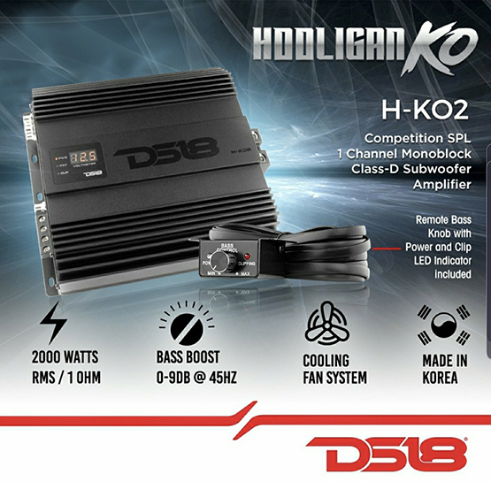 The H-KO2 is a new offering from DS18 to push smaller subwoofers to the maximum all while using half-bridge Korean monoblock power. Korean amps are traditionally knows to be beefier and use the highest quality components compared to their Brazilian full-bride competitors.