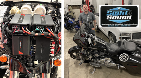 Dan Mount, Sight and Sound owner, related “This was the largest build to date in the 4 years we’ve been doing bikes. This build is crazy loud but talk about clean sound. We definitely went way out with this great customer. The build included Sony head unit plus products from SounDigital, Ground Zero, Beyma, Design Lids and Braille Lithium Battery.”