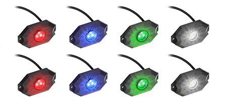 New rock lights are available in white (DL-ROCKW), green (DL-ROCKG), blue (DL-ROCKB), and red (DL-ROCKR), sold as a two-pack. The rock lights are rated IP67 with metal housing for a resilient lighting solution that can go inside or outside—withstanding the elements for use under the vehicle, inside wheel wells, engine bays, and more. It is easy to install with a two-wire connection and hardware is included with flat or curved mounting bases that work on a variety of surfaces. Each 3.6-watt rock light has three 2525 LEDs for an affordable but bright accent lighting solution that adds flair to any vehicle’s interior or exterior.