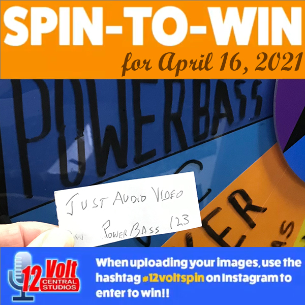 The 12volt Spin-To-Win Wheel rolled for 123rd time on Friday morning April 16th. The Wheel landed on the PowerBass Space. The Just Audio slip was drawn from the jar and an Instagram post of the winning slip was posted. A video of the Wheel spin was also posted. We reached out to Just Audio in North Providence RI and Justin Roberts had already seen the post. He was surprised and happy to hear the news on the phone call. We will contact Erik Harbour at PowerBass and a cool PowerBass prize will be headed to Justin at Just Audio.