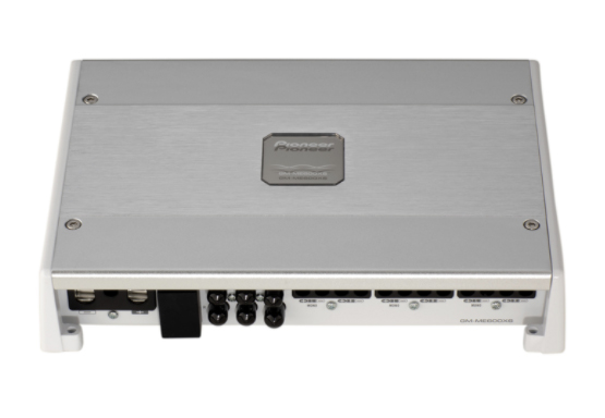- GM-ME600X6 (suggested price: $650): Featuring a corrosion-resistant conformal coated circuit board and single sided ABYC/NMMA compliant terminal connections, the 6-channel GM-ME600X6 full-range amplifier offers a vast array of power output and channel combinations to provide unmatched system flexibility within the Pioneer marine amplifier line-up. The MCU design features built-in high pass and low pass filters (featuring a precise 21-step frequency range), bridged output settings, gain and input selection settings for each of the three pairs of channels (six total channels). Further harnessing the full capabilities of the MCU design, it features both normal output mode (75W RMS x2 stereo at both 2 ohms and 4 ohms / 150W RMS x1 bridged at 4 ohms) or high output mode (100W RMS x2 stereo at both 2 ohms and 4 ohms / 200W RMS x1 bridged at 4 ohms) for each pair of channels, allowing the amplifier’s power output to be more closely matched with the power handling capabilities of connected speakers (sold separately). The amplifier can be configured in the following output modes: 6-channel (all channels operating in stereo mode); 5-channel (4 channels in stereo mode plus 1 bridged mode channel); 4-channel (2 channels in stereo mode plus 2 bridged mode channels); or 3-channel (3 bridged mode channels).