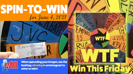 The 12volt Spin-To-Win Wheel rolled for 130th time on Friday morning June 4th. The Wheel landed on the JVC space. The Temecula Mobile Sound slip was drawn from the jar and an Instagram post of the winning slip was posted. A video of the Wheel spin was also posted.