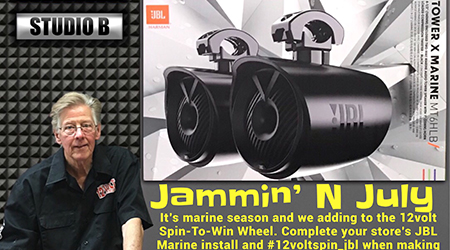 With the 12volt Jammin’ N July initiative the 12volt Spin-To-Win will add another dimension. JBL has provided a MT6HLB Tower X Marine Speaker system with a $799. MSRP. During the balance of July plus August 12volt retailers may enter to with this JBL prize. When a JBL Marine installation is completed at your store make an Instagram post and #12voltspin_jbl. It’s that easy for your store to have an opportunity to win the JBL MT6HLB prize. There will be a drawing for the JBL Tower X Marine speaker on Wednesday, September 1st.