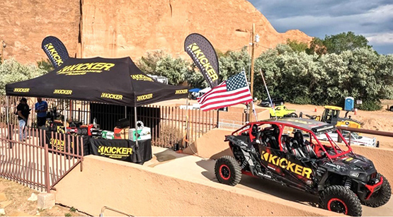 A large KICKER area was positioned prominently on a walkway with a large trailer, demo RZR loaded with KICKER gear and a large tent with KICKER Audio, Marine and Lifestyle products on display. MadDog Media with Lorin Morrell orchestrated KICKER’s activities at the event.