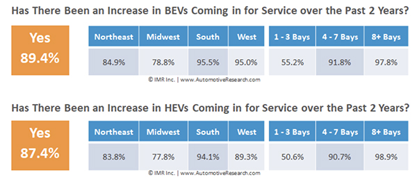 - Of independent repair shops that service hybrid electric vehicles (HEVs) and battery electric vehicles (BEVs), over 85% have seen an increase in service demand for these vehicle types