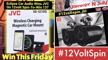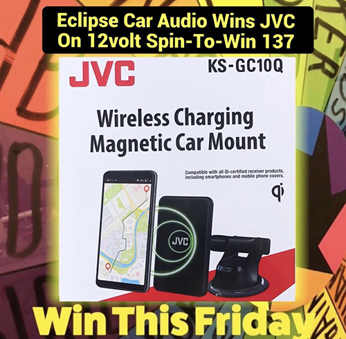 On Friday, January 23rd the 12volt Spin-To-Win Wheel rolled for the 137th time and the Wheel landed on the JVC space. The Eclipse Car Audio slip was drawn from the jar and a JVC Wireless Charging Magnetic Car Mount is headed to Jon Vargas at his store in Vancouver WA. Congratulations Jon.