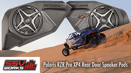 OXNARD, CA (09.08.2021) – SSV Works has announced that its new Polaris RZR Pro XP4 6.5-inch rear door speaker pods (p/n RZ5-DR65) are now shipping and come available unloaded, or with either SSV Works premium marine speakers or Kicker KM marine speakers.
