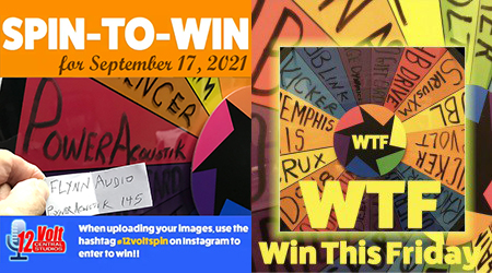 The 12volt Spin-To-Win Wheel rolled for the 145th time on Friday morning September 17th. The Wheel landed on the Power Acoustik space. The Flynn Audio slip was drawn from the jar and an Instagram post of the winning slip was posted. A video of the Wheel spin was also posted.