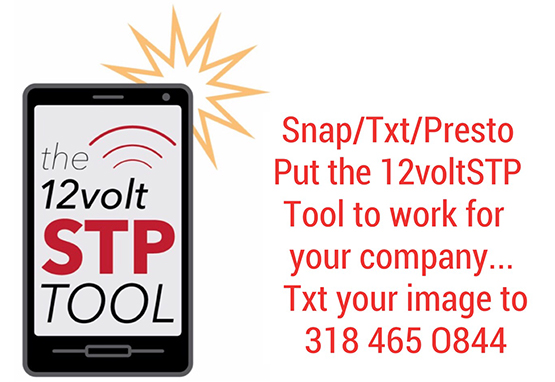 The 12voltSTP Tool and The 12volt News Show work hand-in-hand. Snap and Txt an image of that new product to 318-465-0844. Presto, that new product could in The 12volt News Show.