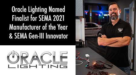 “We are incredibly proud to be finalists for two industry awards, and it is an honor to be recognized in our first nomination for Manufacturer of the Year,” said Tiffanie Hartenstein, Oracle Lighting Chief Executive Officer. “Our team values the opportunity to be an engaged member of SEMA and to contribute to the continued success of the automotive aftermarket industry. As a company, we thrive on innovation in all aspects and are committed to fostering growth in spite of the challenges our industry has faced. We are excited to represent the values that propel us forward in enriching the aftermarket experience.”
