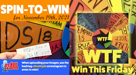 SHREVEPORT LA (11.20.21) WTF…Win This Friday. VapeNAudio won the DS18 prize on the 12volt Spin-To-Win Wheel on Friday morning, November 19th.