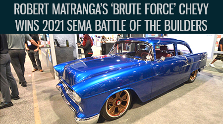 DIAMOND BAR, Calif. (Nov. 29, 2021) — Robert Matranga of Matranga Hot Rod fabricators took the top prize in the eighth-annual SEMA Battle of the Builders® competition on the final day of the 2021 SEMA Show, Friday, November 5. Now in its eighth year of competition, the SEMA Battle of the Builders competition is widely known as one of the elite platforms for builders to showcase their work and compete for the coveted top honor.