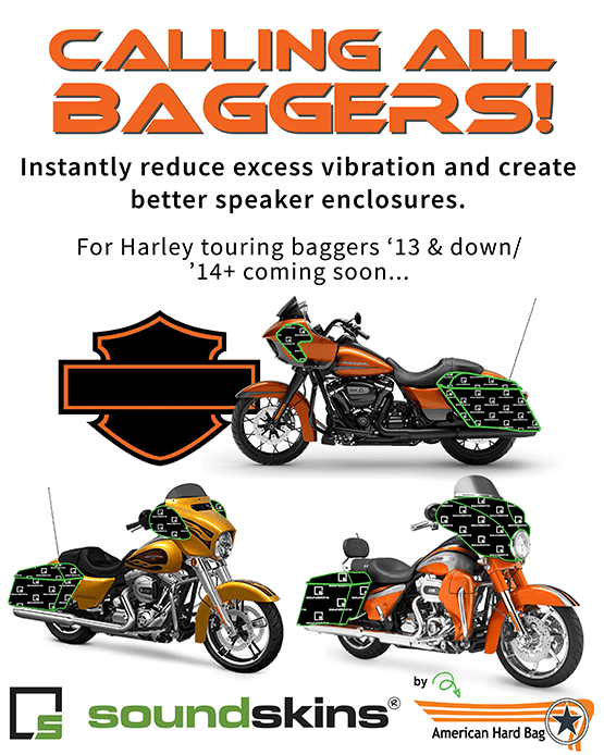 CERRITOS, CA (12.06.2021) – Harley Davidson motorcycle owners now have a simple solution for improving their audio systems and overall riding experience. SoundSkins Global, in collaboration with American Hard Bag, will roll out the market’s first-ever, full lineup of custom-cut sound deadening kits for Harley Davidson touring motorcycles in January 2022.
