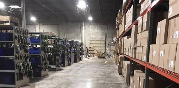 The new warehouse facility, which covers 25,000 square feet, underwent extensive updating and remodeling with new office configurations plus office and showroom floors over the past several months. Racks and racks of shelving was added to the warehouse area.