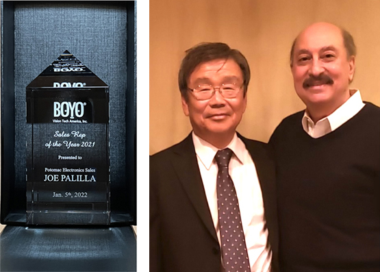 The Distinguished Sales Rep of the Year 2021 award was presented to Joe Palilla of Potomac Electronics Sales for the three years in a row.