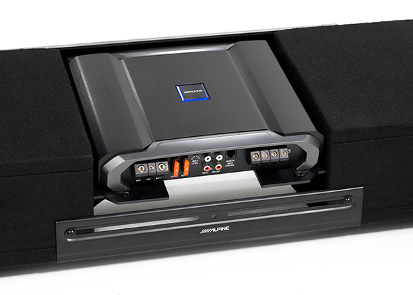 Centered on the enclosures is an integrated amplifier mount tray that’s optimized for Alpine’s mono power amplifiers. This convenient design ensures that the entire system can be installed underneath the seat.
