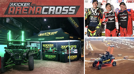 Continuing, “We had a display area in the lobby area and virtually everyone who entered the Lazy E Arena had to pass by the KICKER setup. We had a selection of KICKER products for all to see. We were talking to members of the crowd about KICKER throughout the evening. Oklahoma is truck country so the new KICKER L7T under seat drew a lot of attention. Powersports in strong in the area too so the KICKER RZR grabbed attention. The PowerBar really opened eyes when we cranked it on the RZR in the lobby.”